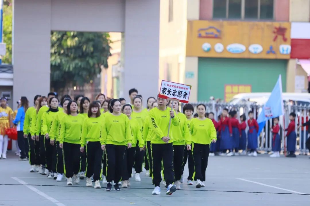 彩旗队、裁判员方队、家长志愿者方队及各班方队等各具特色方队轮番出场