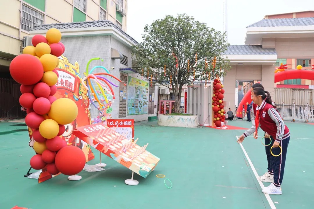 校园内暖意涌动,趣味十足的开学互动游戏同步开启,套圈圈、射击等趣味项目吸引着同学们踊跃参与,欢声笑语不绝于耳。