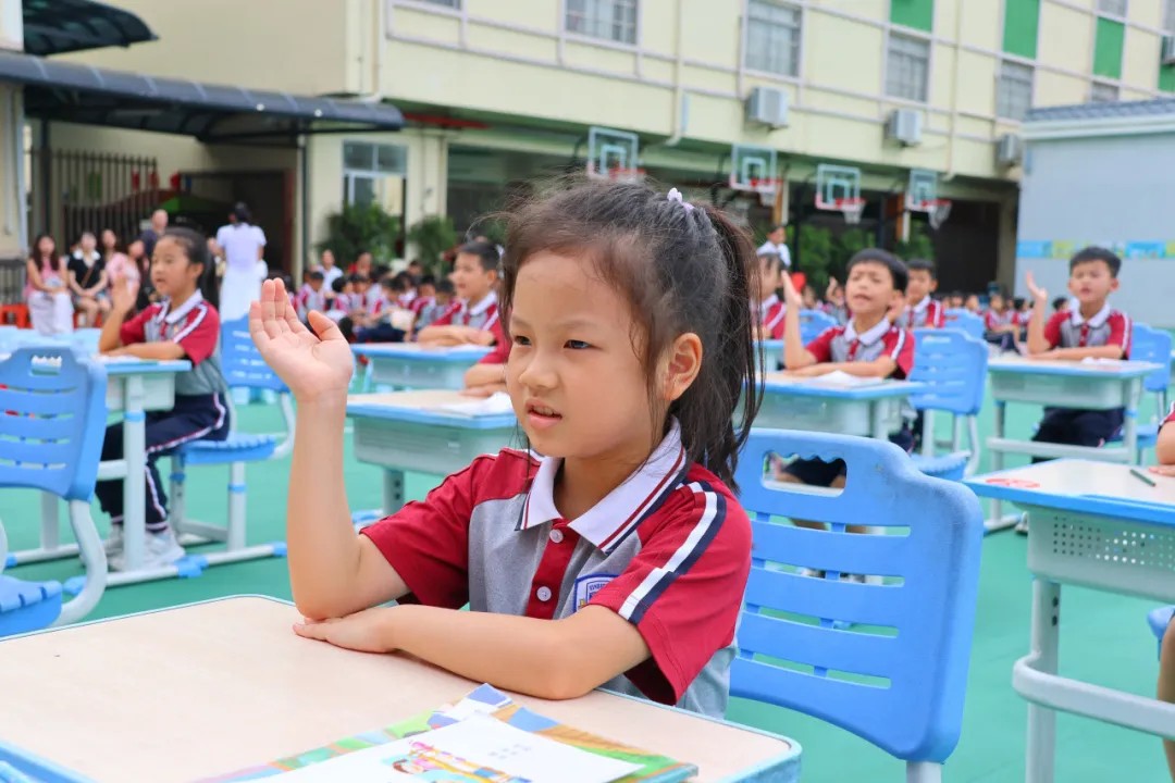 “请举手回答问题!”当指令下达时,一只只小手高高举起,手肘紧贴桌面,动作整齐得如同提前演练过千百遍;当模拟“读书”环节,同学们齐声朗读,声音清脆响亮却不杂乱,节奏统一中透着对知识的渴望。