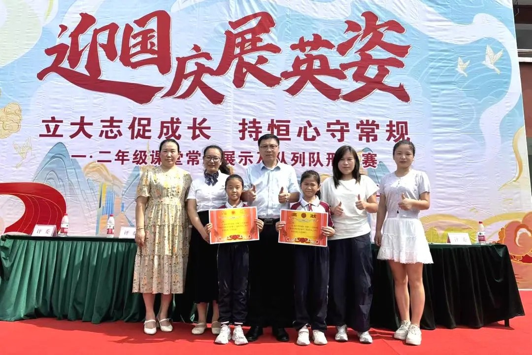 队列比赛结束后,桂校长上台讲话,他强调,课堂常规是学习的“基石”,队形队列是协作的 “纽带”,看似简单的动作背后,藏着对规则的尊重、对集体的热爱。希望同学们能把今天在赛场上的认真与坚持,带到课堂里、带到与同学的相处中,从小养成好习惯,从小懂得团结合作,未来才能长成更挺拔、更有力量的社会人才,为我们的校园、为更广阔的世界增添光彩!校长的话语里满是期许,台下响起阵阵热烈的掌声,孩子们眼中闪烁着更加坚定的光芒。