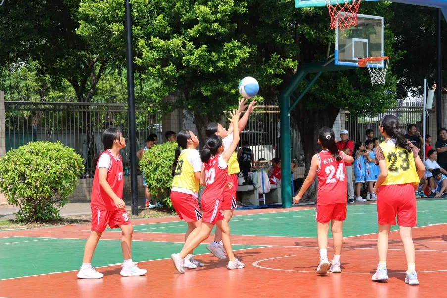 在三人篮联赛的赛场上,我校小学女子组的队员们,以自信与实力,绽放出属于巾帼的别样光芒。她们身姿矫健,动作敏捷,传球精准,投篮果断,每一个瞬间都展现着新时代女孩的活力与风采。