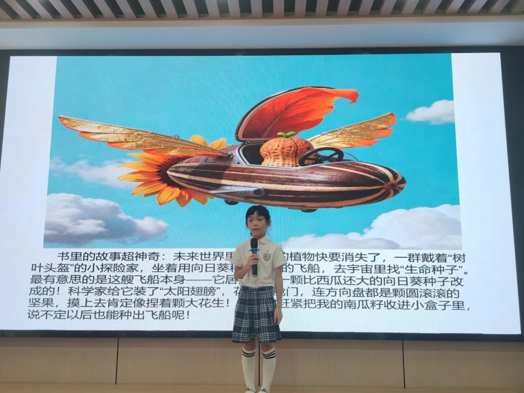 如果说竞赛环节是“以赛促学”,那么“创意表达——阅读心得分享”环节则是 “以读抒情”。各队选派代表,带着精心制作的 PPT,走上讲台分享自己最爱的课外书。这不仅是对阅读积累的终极检验,更是对 “读原著、悟经典” 的有力呼应,让学生在挑战中再次感受名著的魅力,坚定“好读书、读好书”的信念。